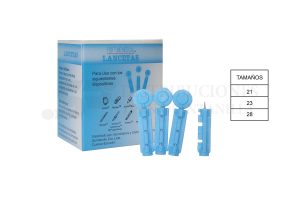 La lanceta se utiliza para hacer punciones en el bulbo del dedo preferentemene en el indice para obtener pequelas muestras de sangre.